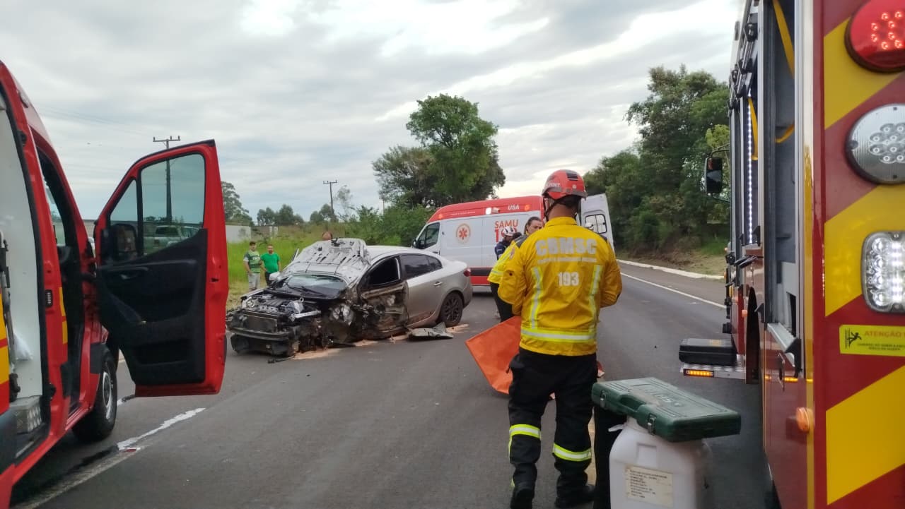 Acidente entre carro e caminhão deixa ferido na BR-282 em Ponte Serrada