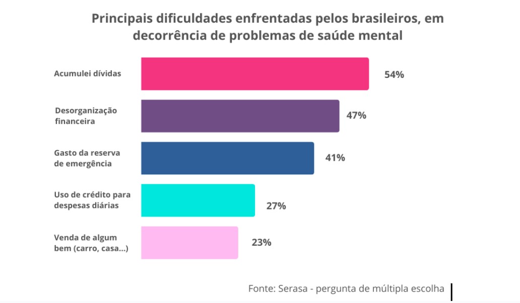 O acúmulo de dívidas, a desorganização financeira, o gasto da reserva de emergência, o uso de crédito para despesas diárias e até a venda de bens estão entre as principais dificuldades enfrentadas pelos brasileiros em decorrência de problemas de saúde mental