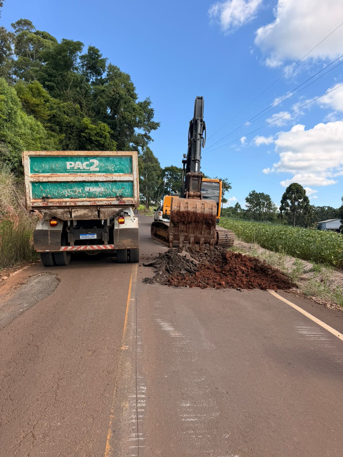O prefeito de Rafael Marin esteve acompanhando de perto, os trabalhos de reforma paliativa na pavimentação asfáltica no trecho que dá acesso à Linha Bianchetto, no interior do município.