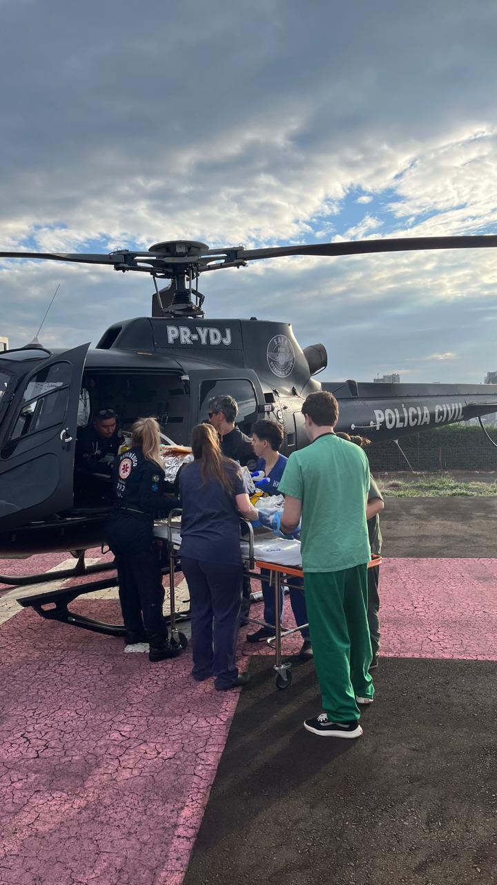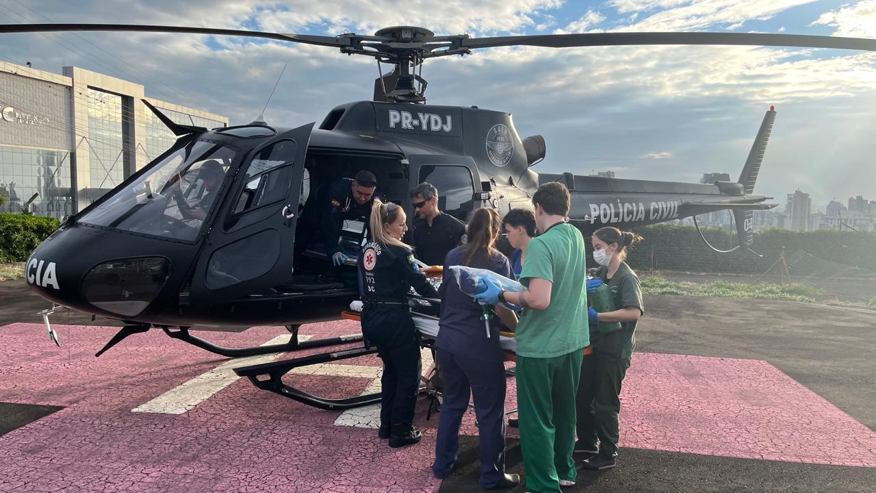 As equipes realizaram os primeiros socorros e estabilizaram o paciente ainda no local. Em seguida, o homem foi encaminhado de helicóptero ao Hospital Regional do Oeste, em Chapecó, para atendimento especializado.