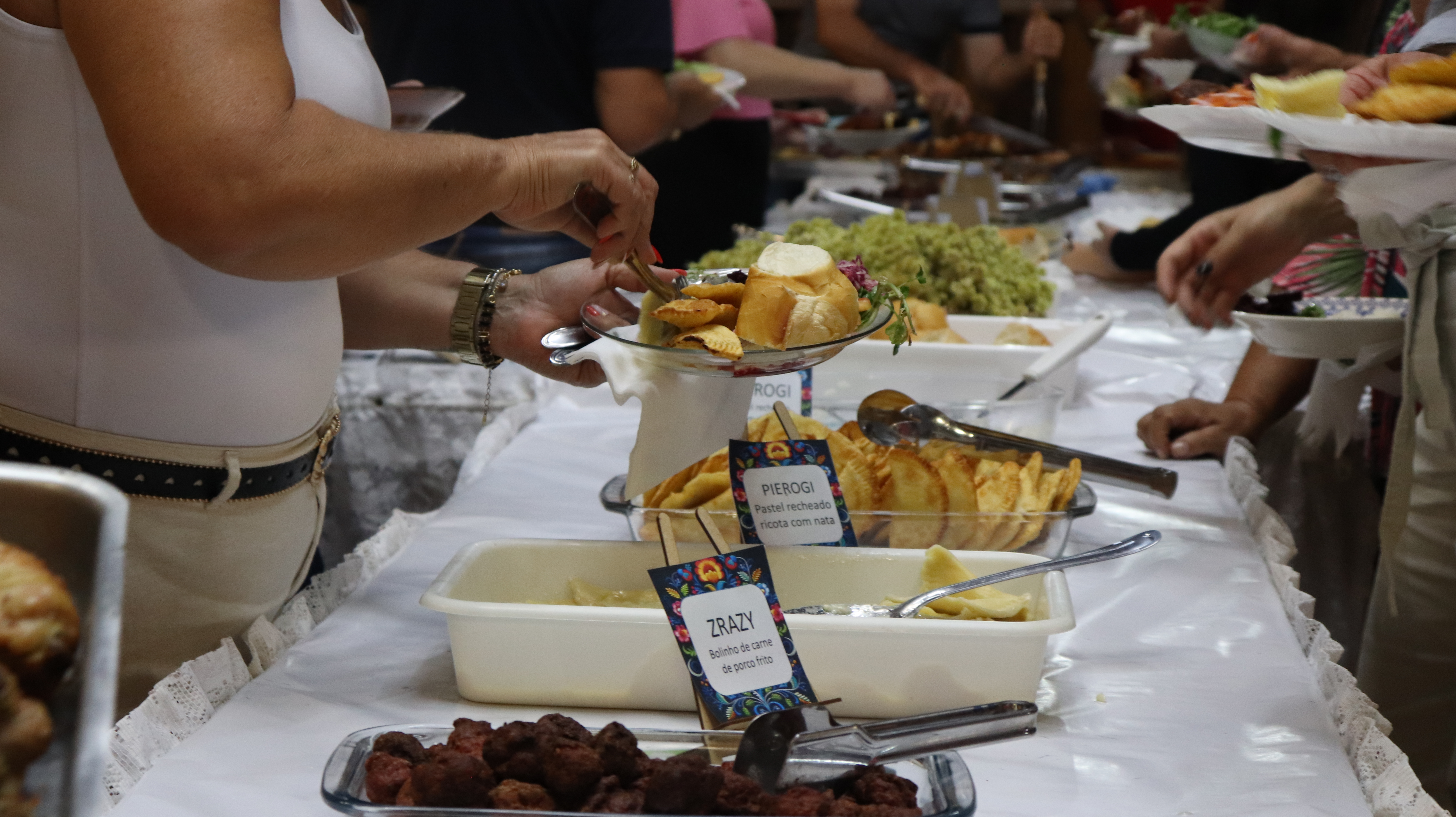 O cardápio contou com pratos típicos da culinária polonesa, como pierogi, rissoles e outros pratos tradicionais, além de carne assada, arroz, batata caramelizada e saladas. A programação também contou com música ao vivo e baile, garantindo a animação do público.