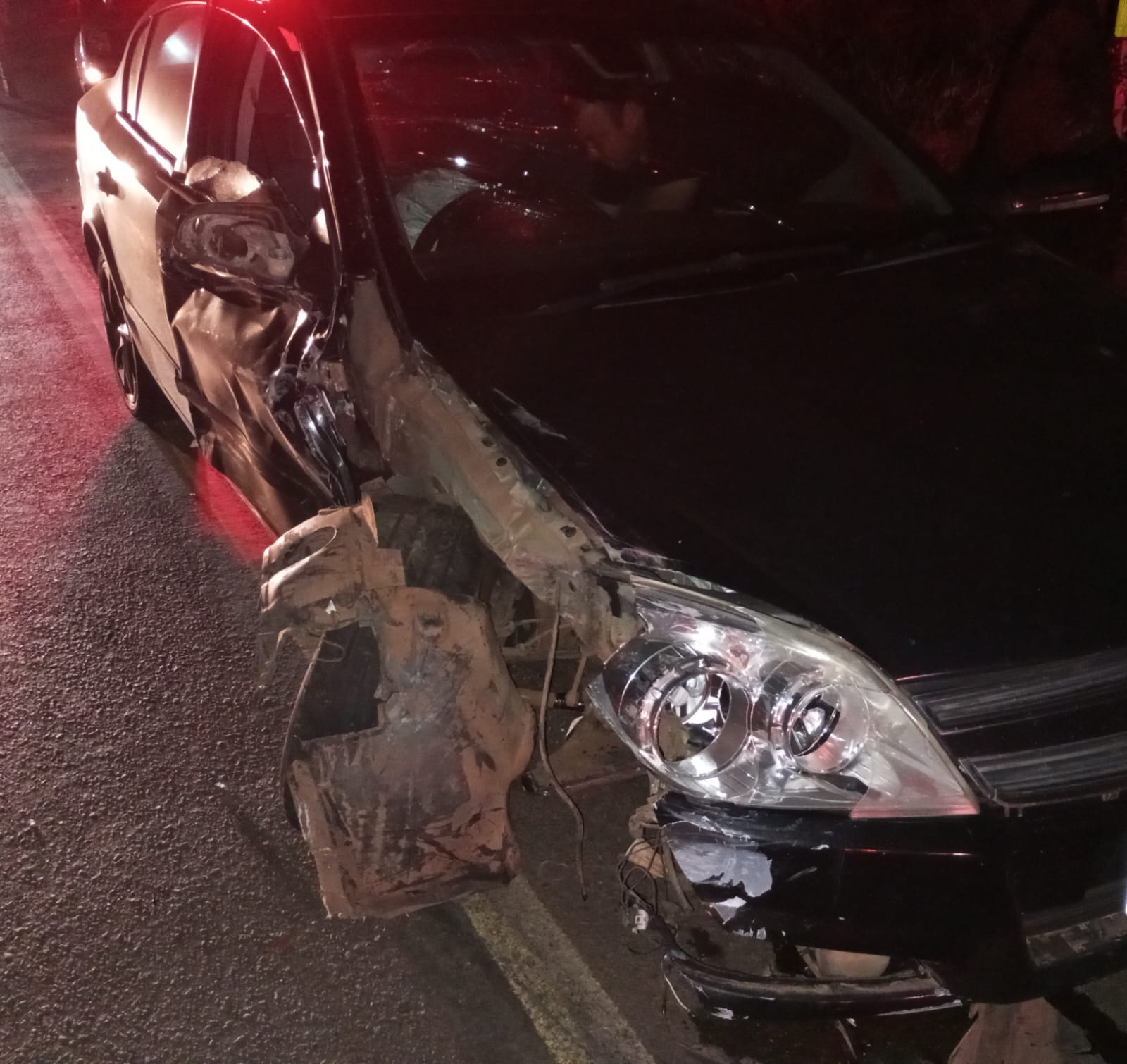 Segundo o Corpo de Bombeiros Militar, a batida foi do tipo colisão lateral, quando os veículos se chocam de lado. No Corsa, havia um homem maior de idade, que estava consciente, orientado e com sinais vitais estáveis. Porém, ele ficou com a perna direita presa nas ferragens.