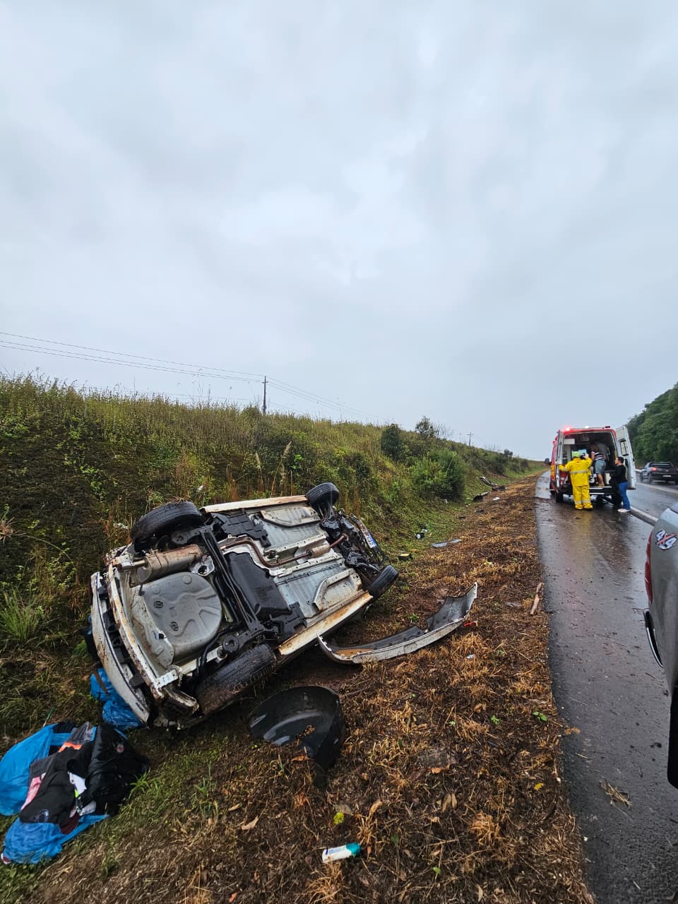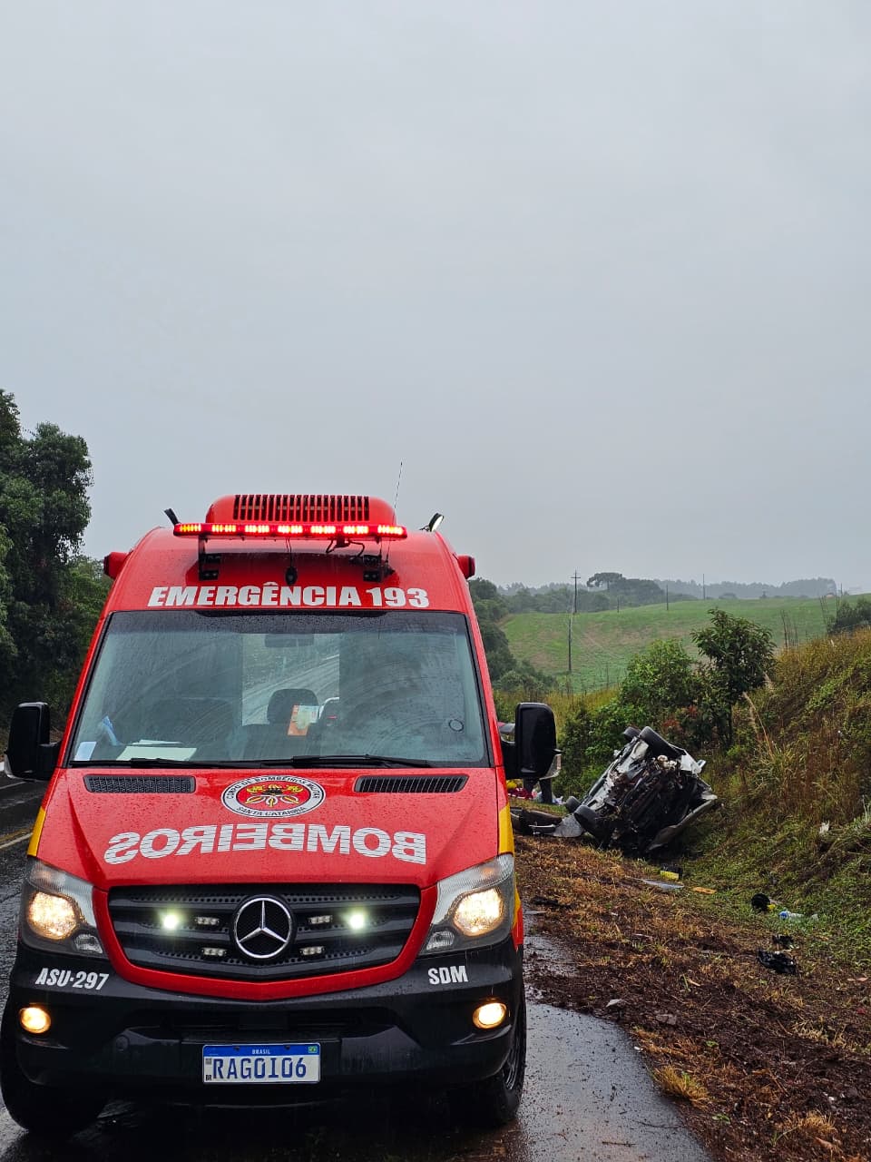 De acordo com o Corpo de Bombeiros Militar, a ocorrência foi atendida pela equipe de Faxinal dos Guedes, com apoio de Ponte Serrada. O acidente foi do tipo saída de pista seguida de capotamento — quando o veículo sai da rodovia e acaba virando.