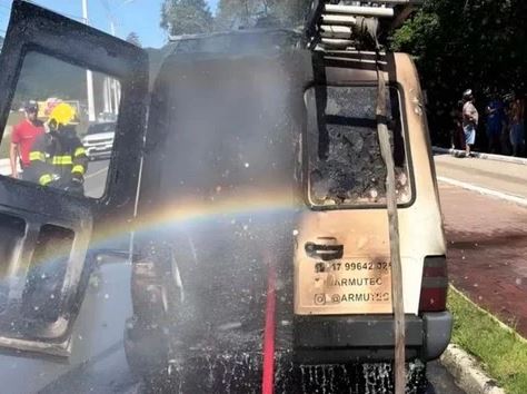Com o avanço do fogo, os pneus chegaram a estourar, e o para-brisa quebrou, aumentando o risco. O Corpo de Bombeiros foi acionado, mas, ao chegar, o veículo já estava completamente tomado pelas chamas.