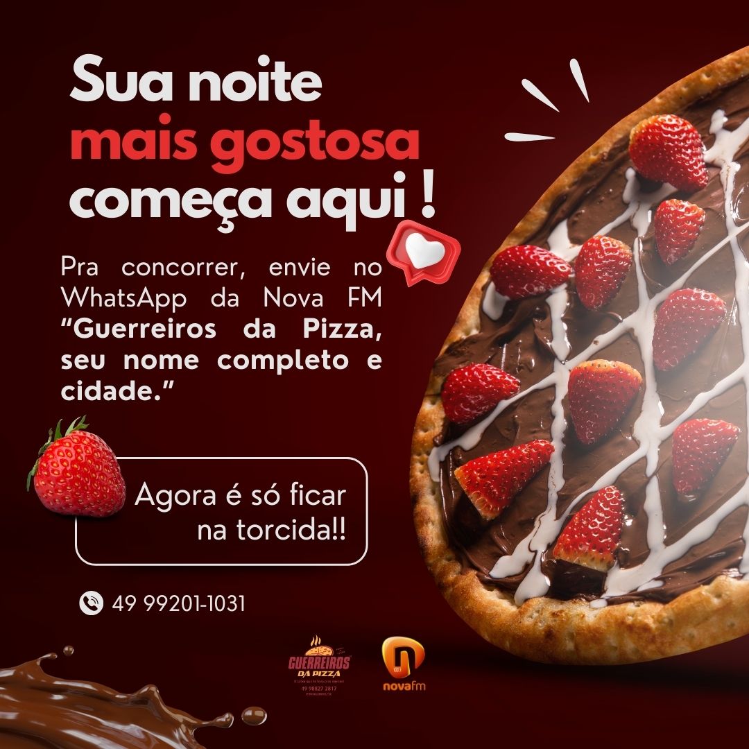 Pra participar é muito fácil, envie agora uma Watts para a @103novafm no 99201 1031 iniciando com Guerreiros da Pizza, seu nome completo e sua cidade e aí é só ficar na torcida.
